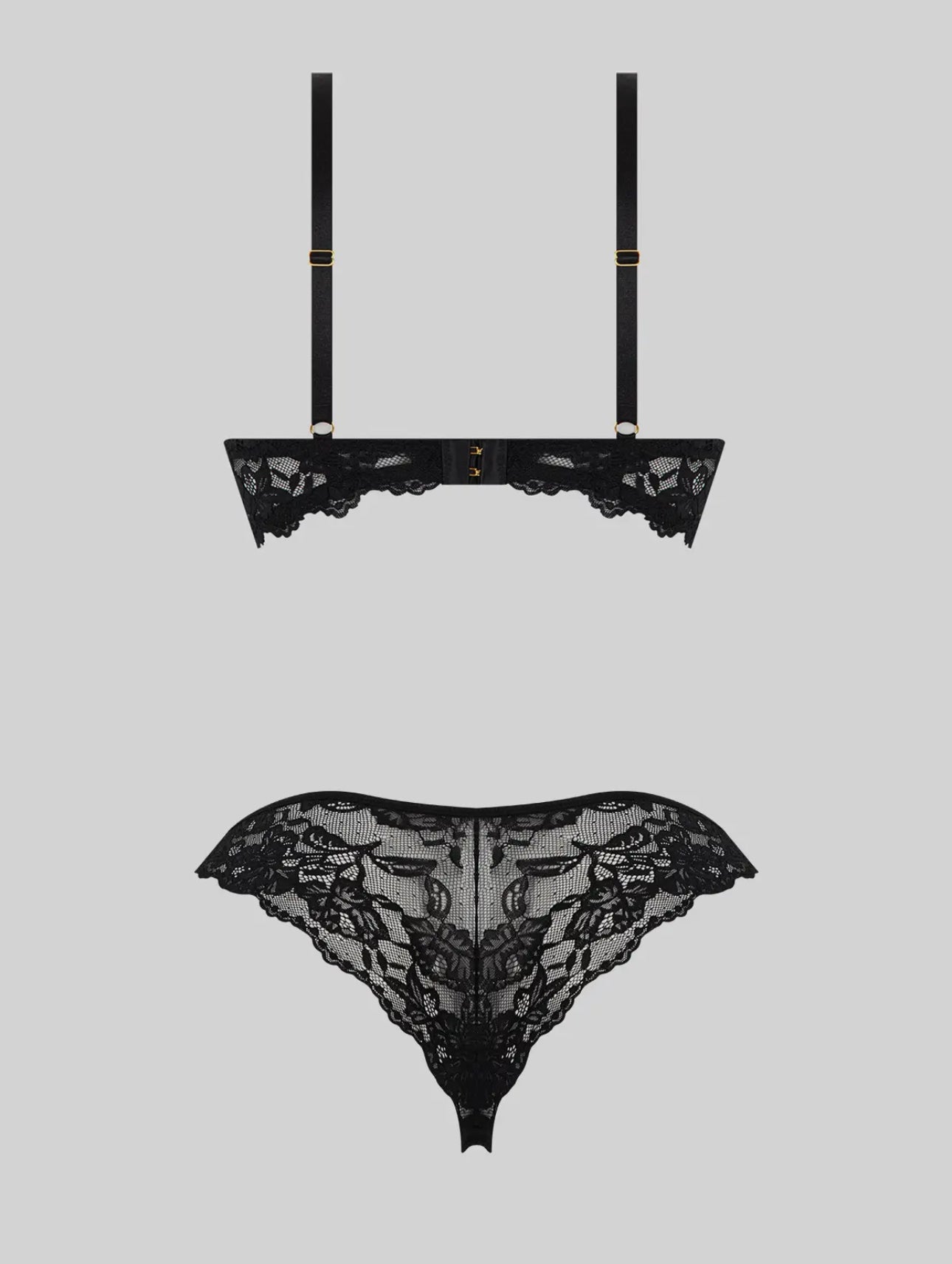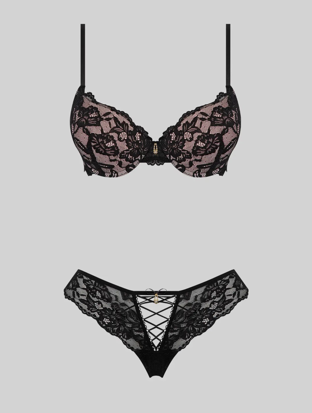 This demi bra delivers lift with a sultry edge, finished in delicate lace trim for just the right tease. Paired with a curve-hugging tanga in soft stretch lace, featuring scalloped florals and a lace-up front. It's all about the details-and how unforgettable you'll look in them. Push up bra with lots of lift and soft scallop lace. - Bra is fit flexible with adjustable shoulder straps and hook & eye back closures. - Tanga panty features stretch lace with lace up front detail. - Panty includes a soft, cotton liner. Care & Content: - 88% NYLON, 12% SPANDEX.